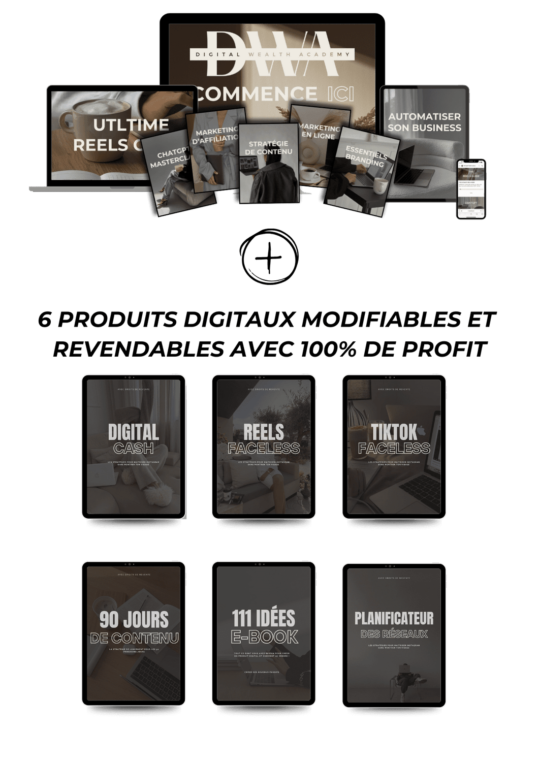 - 6 produits digitaux exclusifs que vous pouvez revendre en conservant 100 % des bénéfices.