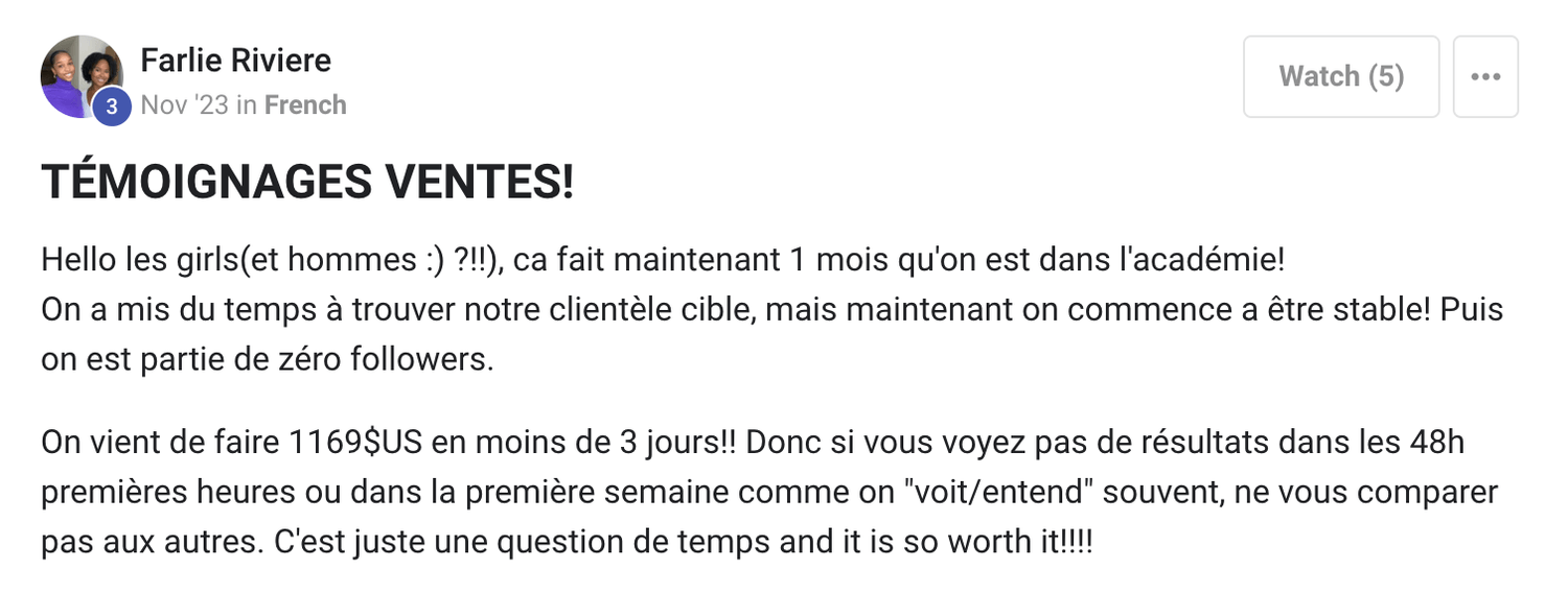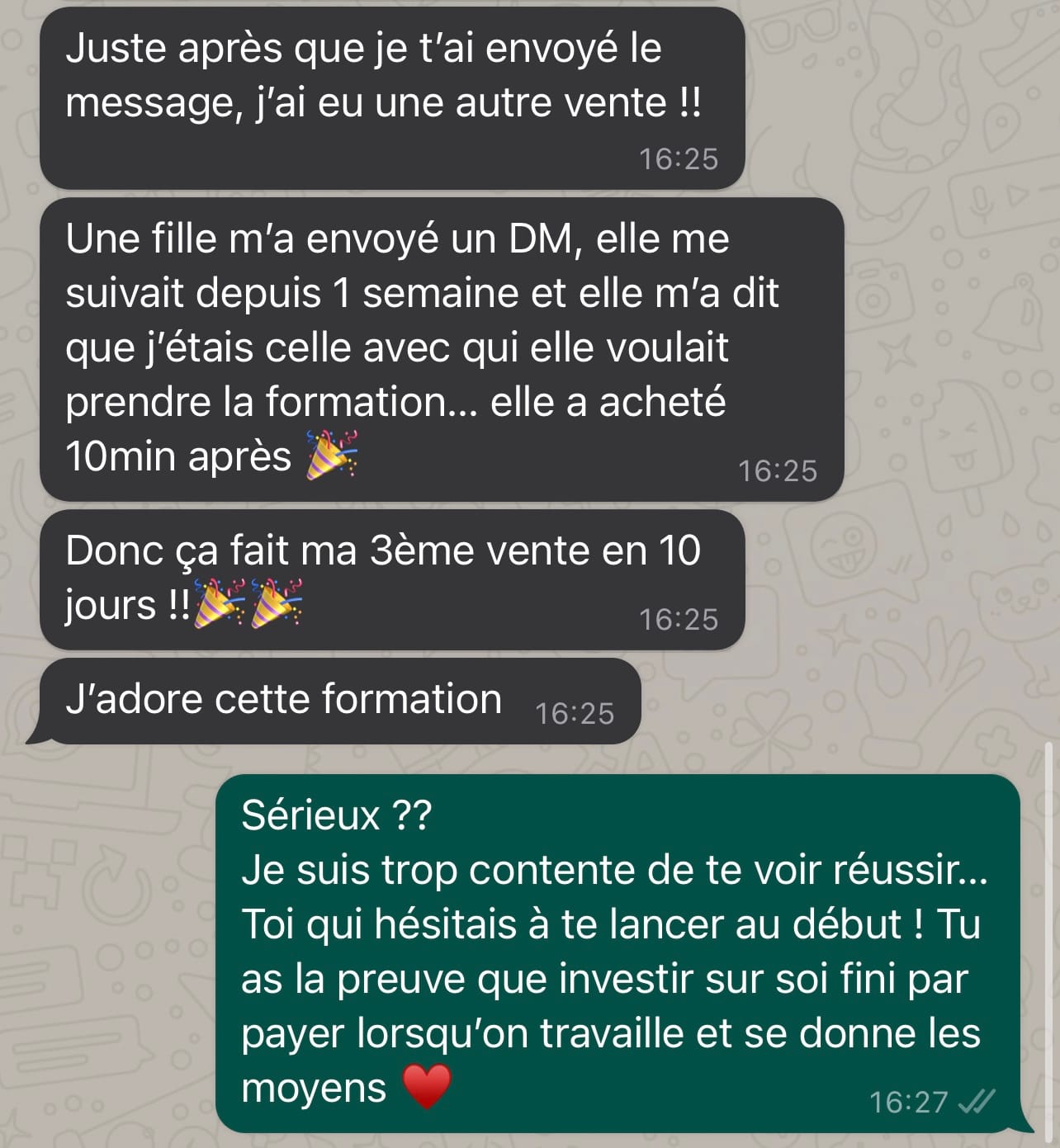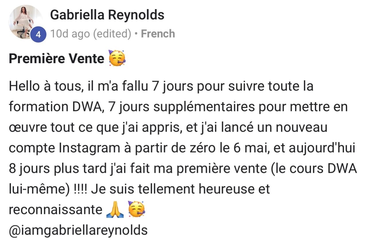 Quand j’ai vu que des membres de la DWA réalisaient des chiffres incroyables et avaient obtenu leur liberté financière alors qu’elles étaient dans des situations difficile (divorcée, endettée de 20 000€, des enfants à charges…),