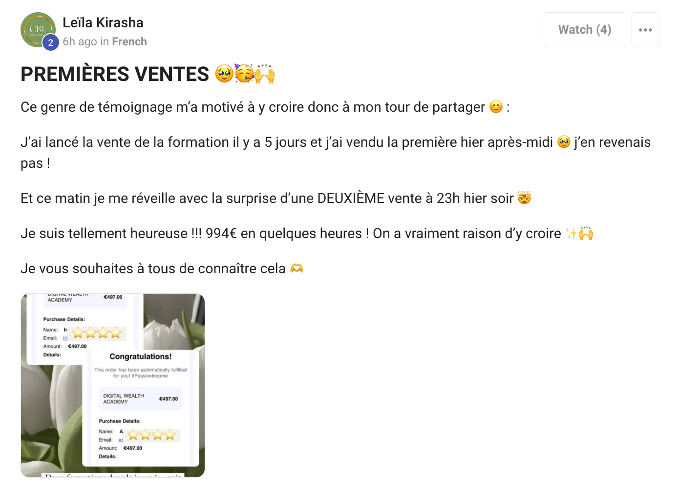 Quand j’ai vu que des membres de la DWA réalisaient des chiffres incroyables et avaient obtenu leur liberté financière alors qu’elles étaient dans des situations difficiles (divorcée, endettée de 20 000€, des enfants à charges…),